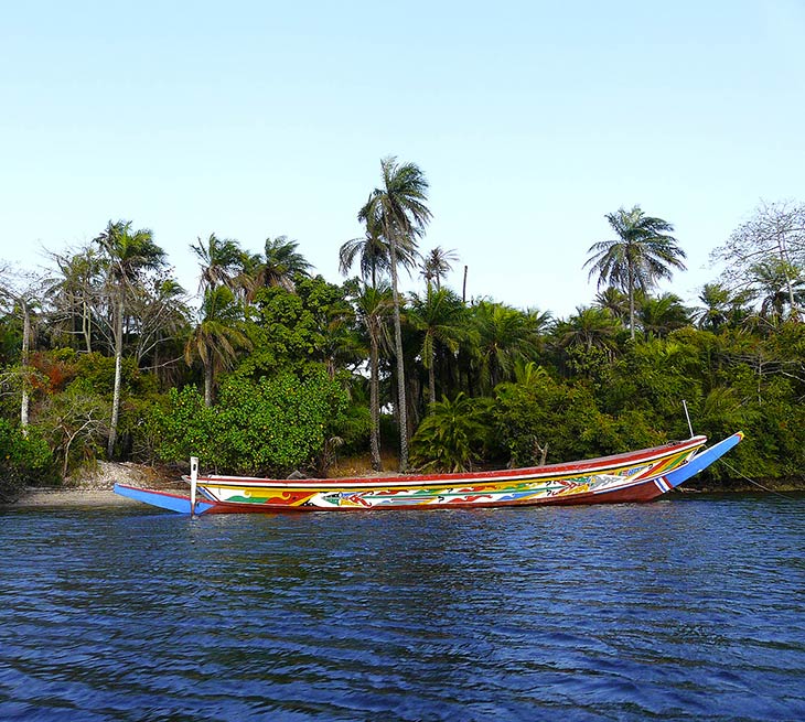 North of the Saloum Delta, the arms of the river meet the sea by penetrating the mangrove.
