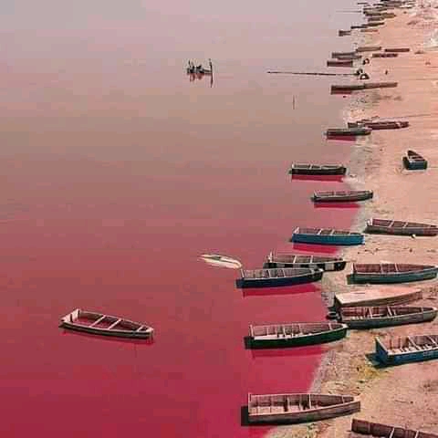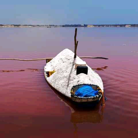 Le lac Rose est un grand lagon de 3 km², peu profond, entouré de dunes et situé à quelques centaines de mètres de l’océan Atlantique, à 35 km au nord-est de Dakar.